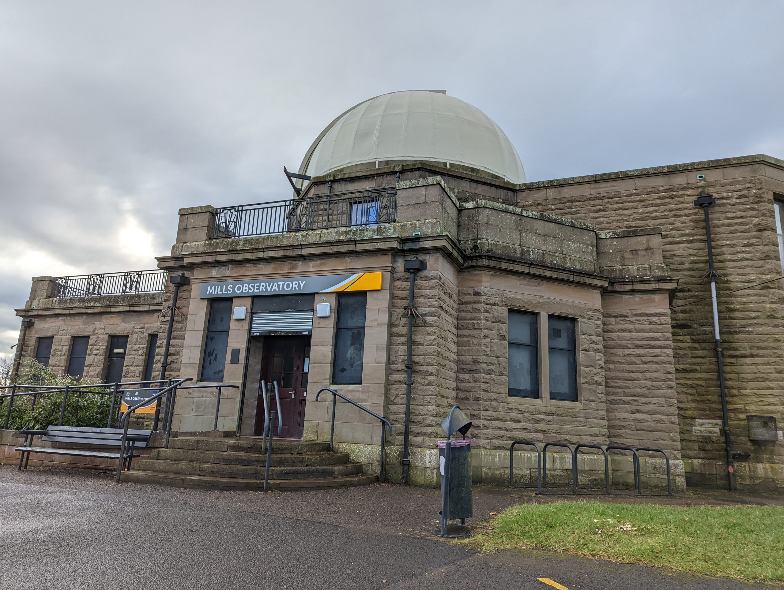 We normally hold member meetings once or twice a month at the Mills Observatory, Balgay Hill, Dundee in the months October through to March. The first part of the meeting consists of a talk lasting about an hour from a guest or member, followed by a short tea break, then a shorter session for members to make their contributions.